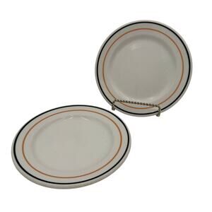 Vtg Syracuse Salad Bread Dessert Plate Black & Gold Stripe Restaurant Ware Set/2