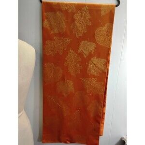 Vtg TABLE RUNNER Orange Velvet with Metallic GOLD Beadin 72" x 16"