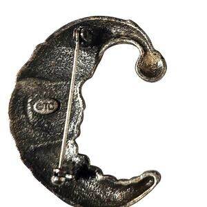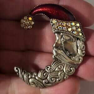 Vtg TC Tanya Creations Pewter Enamel Rhinestone Santa Crescent Moon Pin Brooch