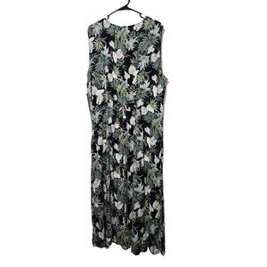 Vtg TEDDI Woman Maxi Dress Sz 22W Floral Boho Beach Tropical Pintucked Tie Waist