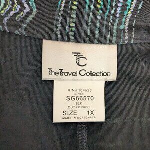 Vtg THE TRAVEL COLLECTION Black/Multi 3/4 Sleeve Button Blouse-Jacket; Size 1X