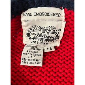 Vtg THE VILLAGER 100% Worsted Wool Sweater Women's S Petite Red Hand Embroidered