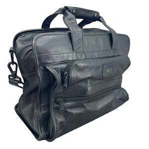 Vtg TUMI Nappa 923D3 Black Leather Multi-Pocket Travel Bag Monogramed READ