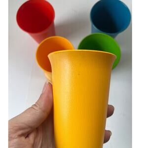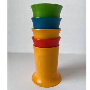 Vintage Tupperward Children Sippy Cup Plus 4 Classic Bell Tumblers Primary Colors
