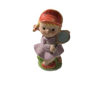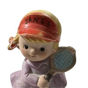 Vtg Taiwan Home Interiors Painted Janie Plays Tennis Figurine Potpourri Diffuser