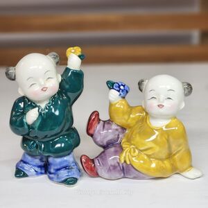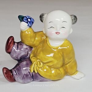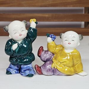 Vtg Takahashi Asian Baby Buddha Children Porcelain Salt & Pepper Shakers Japan