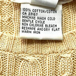 This 100% cotton Talbots cable knit sweater has no rips holes or stains, but it MAY be slightly shrunk in length.