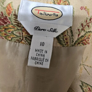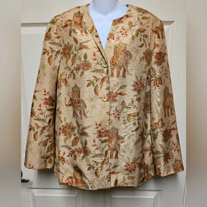 Vtg Talbots Jacket Beige Green Pure Silk Elephant Floral Asian Indian Split Sz10