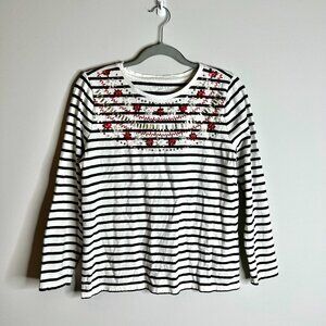 Vtg Talbots Red Rose Embroidered Button Front Chunky Cardigan Sweater Size XL