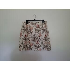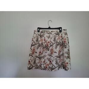 Vtg Talbots Unique A Line Skirt Ivory Tan Monkeys Floral Lined Zip Sz 10P