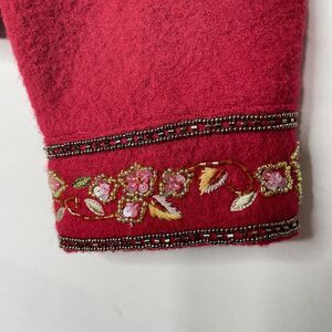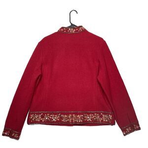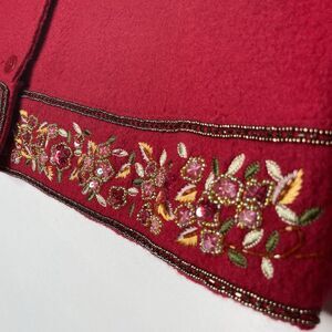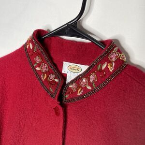 Vtg Talbots Womens Boiled Wool Cardigan Floral Beaded Embroidered Sz L Petite