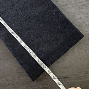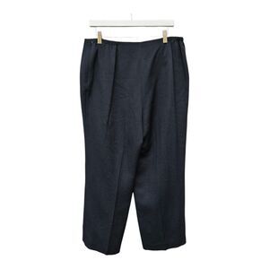 These vintage Talbots women's pants in size 14W PETITE offer a luxurious feel with a pebbled texture made from silk and wool. The black color and tapered leg style give them a classic yet modern look, perfect for workwear or everyday wear. The trousers feature a side zip closure and a flat front, with a lined interior for added comfort. Ideal for the winter, fall, or spring seasons, these pants exude a sense of quiet luxury and minimalist style. Excellent condition. See pictures for measurements