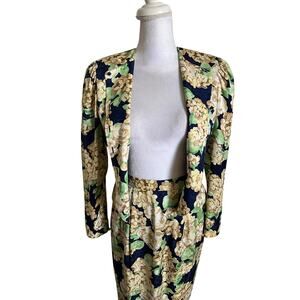 Vtg Talbots by Adrianna Pappel Silk Floral Suit Set Top and Skirt size 4