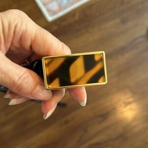 Vintage Talbots thin black leather belt with faux rectangle tortoiseshell buckle