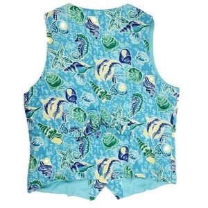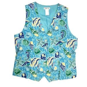 Vtg Talbots Womens Blue Vest Medium Starfish Seahorse Beach Ocean Cruise