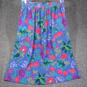 Vtg Tan Jay A Line Skirt Womens 16 Purple Blue Floral Pleated Made in USA 80s 90s Cottagecore
