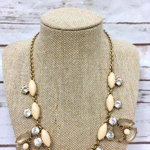 Vintage Tan Nude & Rhinestone Floral J Crew Statement Necklace Vtg