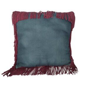 This is a very nice tapestry pillow with American decorated birdhouses with stars all around. There is silky fringe around the border which adds a nice touch. Pillow measures 16 x 16.