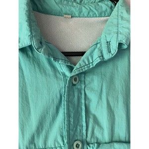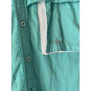 Vtg Tarponwear By Simms Short Sleeve Vented Nylon Fishing Shirt Teal Mens Med