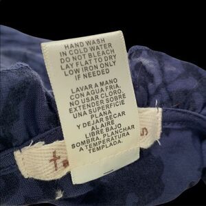 Vtg Tastament Navy blue sheer floral tunic top with ruffled neckline Small EUC