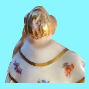 Based on the visual evidence and search results, the figurine is a Taube porcelain Victorian gentleman figurine. Taube China Company was a German manufacturer of porcelain figures and decorative items.