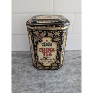 This vintage tea caddy is a beautiful addition to any collection. Made by Thomas Martin & Co. in New York, this tin box features colorful advertising for their tea products. The box is in great shape and showcases the unique design of the period. The item is perfect for collectors of advertising and merchandise & memorabilia, particularly those interested in tea-related items.