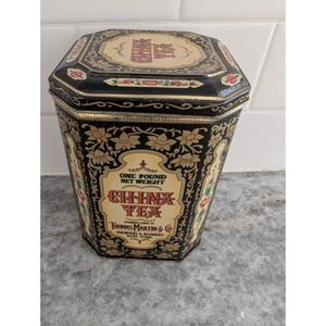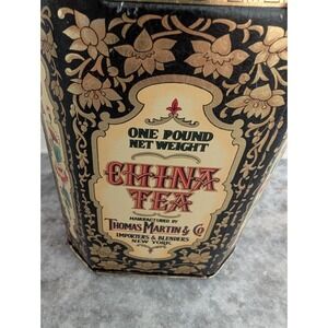 Vtg Tea Caddy China Tea Box Thomas Martin & Co New York Advertising Tin