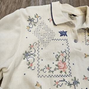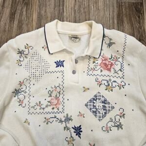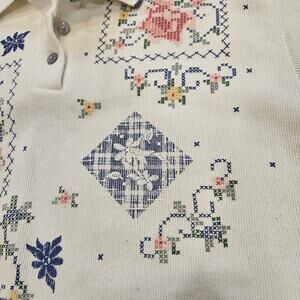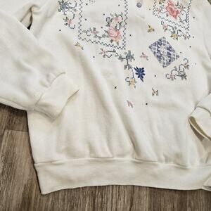 Vtg Teddi Floral Collared Sweatshirt Womens PXL Embroidered Look Boho Grandma