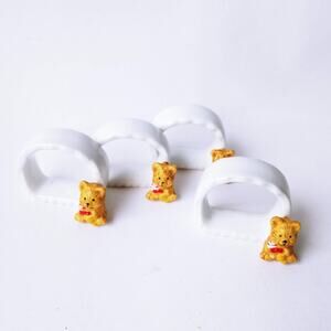 Vtg Teddy Bear Ceramic Napkin Holders Set of 4 Holiday Teddy Table Decor Rings