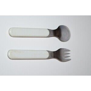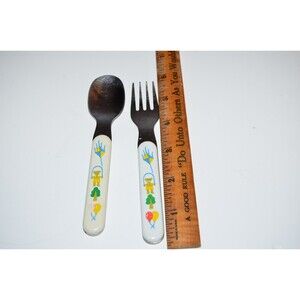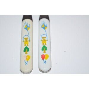 Vtg Teddy Bear flying Kite Spoon & Fork toddler Baby utensils
