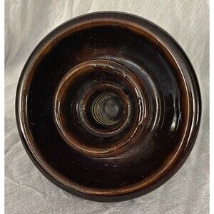 This is a vintage brown glazed insulator and is made from ceramic or porcelain.