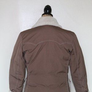 Vtg Tempco Brown Goose Down Zip Sherpa Collar Coat Jacket USA Women's S/M