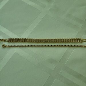 Vtg Tennis Bracelets Set Of Two 3-Strand Gold Tone Sparkle 7" Avon