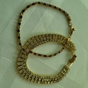 One is Red And White crystal rhinestones. The crystal and red stone bracelet is marked by Avon.