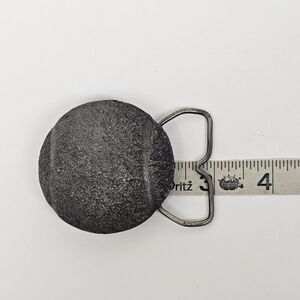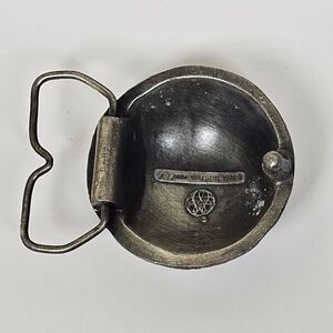 This vintage tennis round textured chunky dome ball belt buckle from Bergamot Brass Works is a unique vintage accessory from 1975. Made of pewter with a silver color, this belt buckle features a sports theme. Its original design and adult unisex appeal make it a special and stylish addition to any collection. Made in the United States, this belt buckle showcases the quality craftsmanship of the era. See photos for approximate measures in inches. In very good pre-owned condition with minimal age related wear to metal as shown in photos.