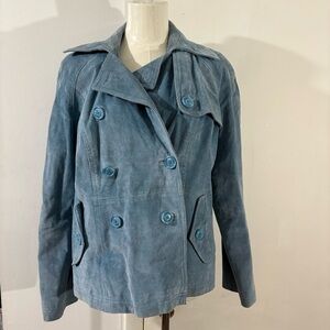 Vtg Terry Lewis Classic Luxuries Blue 100% Suede Leather Size M Jacket Buttons