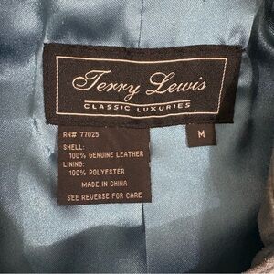 This vintage Terry Lewis Classic Luxuries jacket is crafted from 100% blue suede leather, featuring a solid pattern with button accents and a collared neckline. The jacket is designed with a long sleeve and a size M fit, suitable for occasions like travel, parties, or casual wear. The jacket has a retro vibe with a hint of bohemian and biker influences, making it a versatile piece for the winter, fall, or spring seasons. Made in China, this timeless piece adds a classic and colorful touch to any outfit.