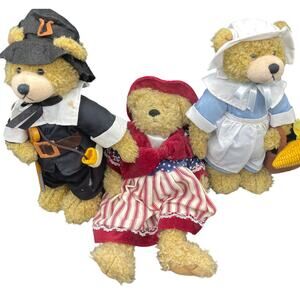 Vtg Terry's Village & Thanksgiving Prudence Lady pilgrim & patriotic Teddy Bear