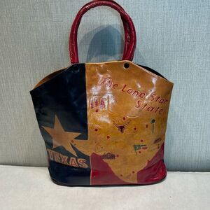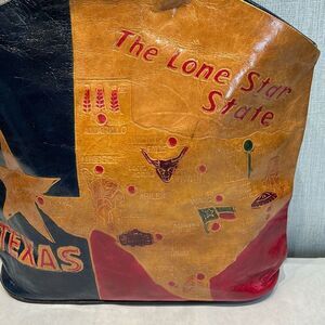 Vtg Texas Lone Star State Leather Handbag TX Flag Stamped Tooled Cities