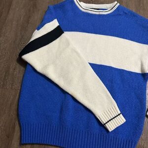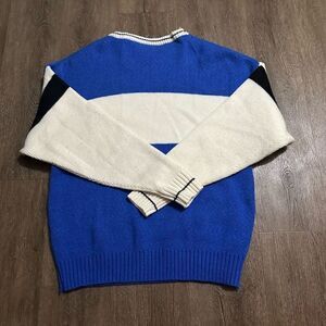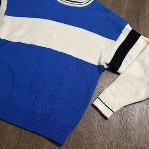 Vtg The Aspen Lid 80s Blue White Color Block Wool Blend Crew Sweater Mens XL
