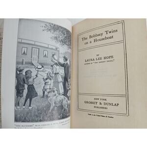 Vtg The Bobbsey Twins Books Hardcover Lot of 2 Laura Lee Hope And Baby May (1924) & On A Houseboat (1915) *READ: Normal wear and tear due to age, slight areas of damage to dust covers, inscriptions -see all photos