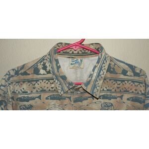 Vtg The Day’s Catch Mens Large LS Button Fishing Shirt Beige Fish Pattern Vented
