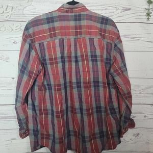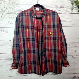Vintage The Disney Store Red Blue Plaid Long Sleeve Button Down Shirt Womans Size Large. Pre-owned