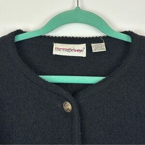 Vtg The Eagle’s Eye Blk Worsted Wool Gold Button Cardigan Jacket Minimalist L