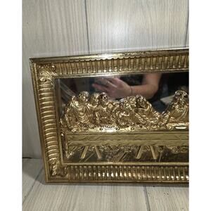 Vtg The LAST SUPPER 3D Wall Gold Art Picture Religious Home Decor Jesus Our Savior Christian Catholic Church Easter Bible Gallery Wall Christmas Holiday Hollywood Regency French MCM Victorian