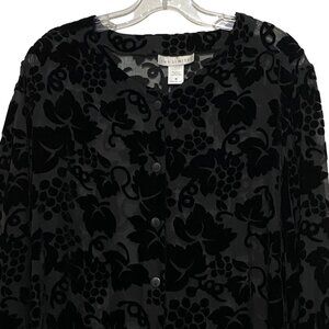 Vtg The Limited Floral Velvet Burnout Button Front Top M Black Y2K Dark Romantic