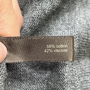 Good preowned condition. There is one thread that is lighter in color on the front of the sweater as shown in the photos.