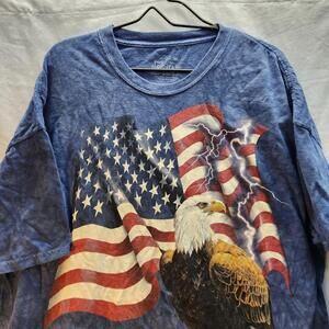 Vtg The Mountain Shirt Mens 3XL American Flag Bald Eagle USA Blue Tie Dye