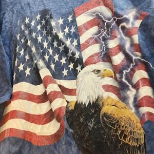 The shirt is a size 3XL and has a regular fit. It is lightweight and collarless, with a vintage look and feel. The shirt is perfect for those who love patriotic and animal-themed clothing, as well as those who appreciate classic and retro designs. Made in the United States, this T-shirt is a great addition to any wardrobe.