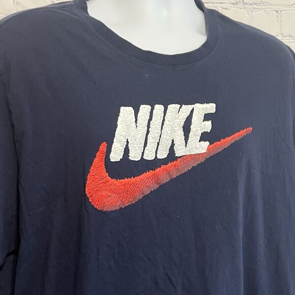 The Nike Tee Red Swoosh Navy Blue Nike T-shirt Size XXL 2XL Short Sleeve Cotton